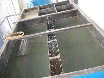 目前,在斜板沉降水處理時,由于斜板組通過彈簧固定在箱體內,對于維護或清洗都不方便。